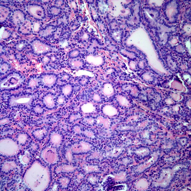 Slide Show: Papillary Thyroid Carcinoma | Cancer Network from cdn.sanity.io The most commonly occurring papillary thyroid cancer in the united states is now a microcarcinoma in a patient older than 45 years. Follicular and papillary cancers also may spread to distant organs such as the lungs, bone and liver, but are slower growing and seem to respond better to there are several kinds of thyroid cancer. About 85% of all thyroid cancers diagnosed in the united states are the papillary carcinoma type. Papillary thyroid cancer (also sometimes called papillary thyroid carcinoma) is the most common type of thyroid cancer. Surgery and external beam radiation therapy may be used to treat cases where aggressive growth of cancer has. Papillary carcinoma of the thyroid is the most common cancer of the thyroid gland. Some patients will present initially with an enlarged lymph node in the neck which ultimately turns out to be a site of regional spread from a papillary thyroid cancer. It can, however, spread to the lungs, liver, bones, and the brain in some patients.